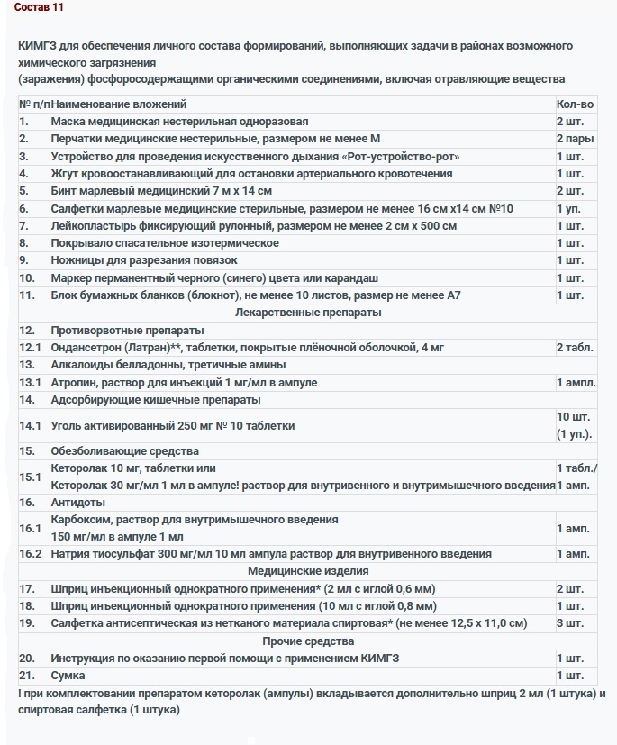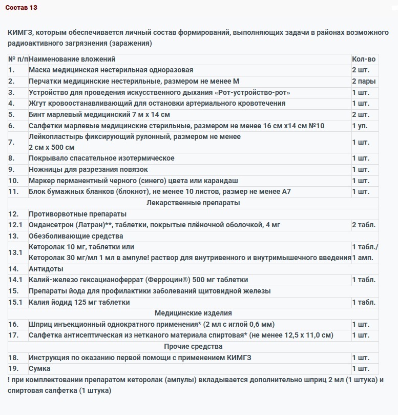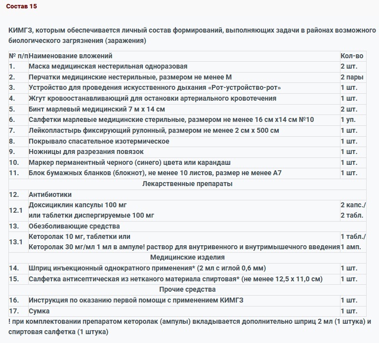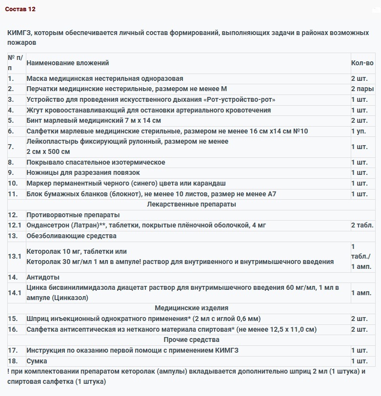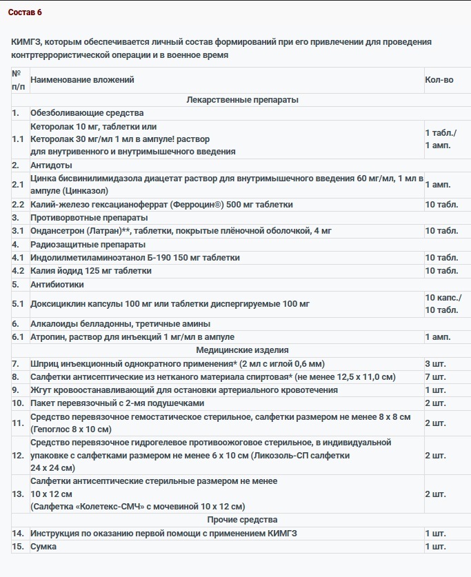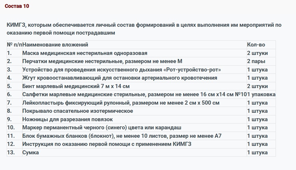 КИМГЗ, которым обеспечивается личный состав формирований в целях выполнения им мероприятий по оказанию первой помощи пострадавшим