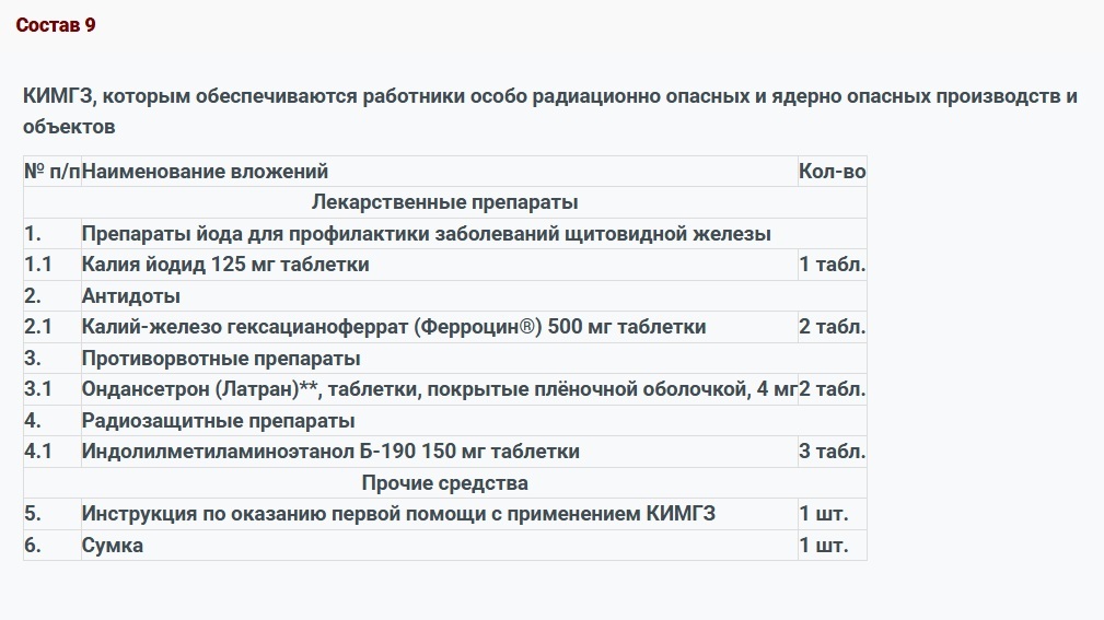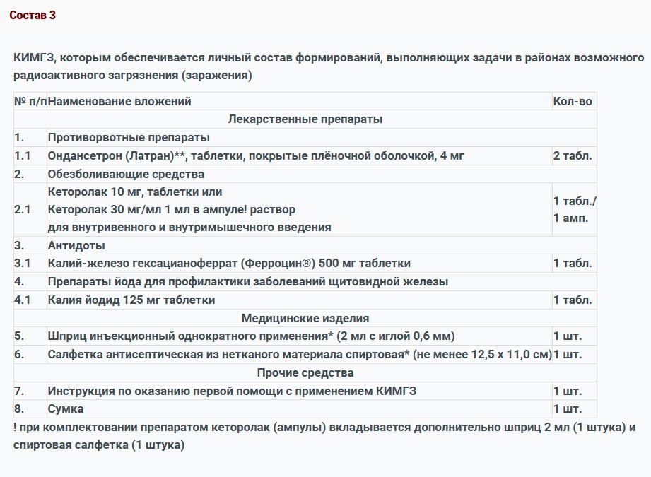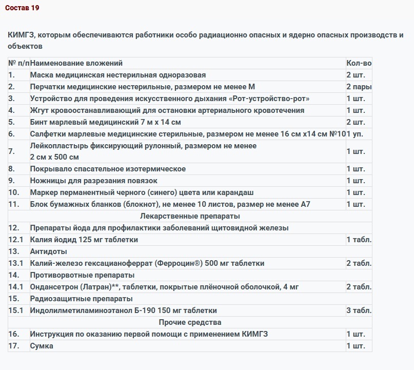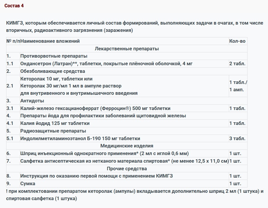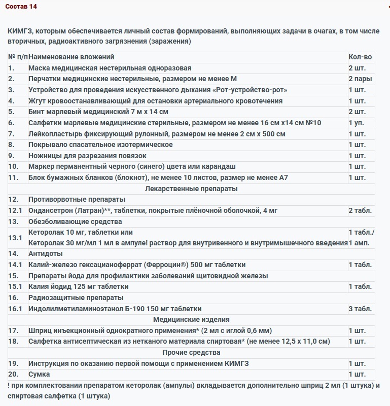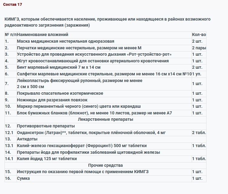 КИМГЗ, которым обеспечивается личный состав формирований в целях выполнения им мероприятий по оказанию первой помощи пострадавшим