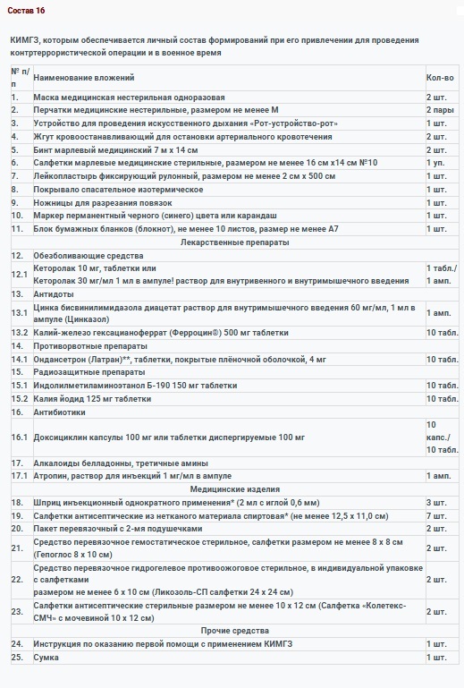 КИМГЗ, которым обеспечивается личный состав формирований при его привлечении для проведения контртеррористической операции и в военное время